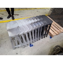 Tout commence dans nos ateliers, lors de la fabrication des tabourets Flex Perch. Entre deux séries de couleurs, (couleur #1 et couleur #2, couleur #2 et couleur #3), le moule crée parfois des nuances inattendues, des dégradés surprenants. Plutôt que de les considérer comme des défauts, nous avons choisi de les valoriser car ces tabourets sont uniques.